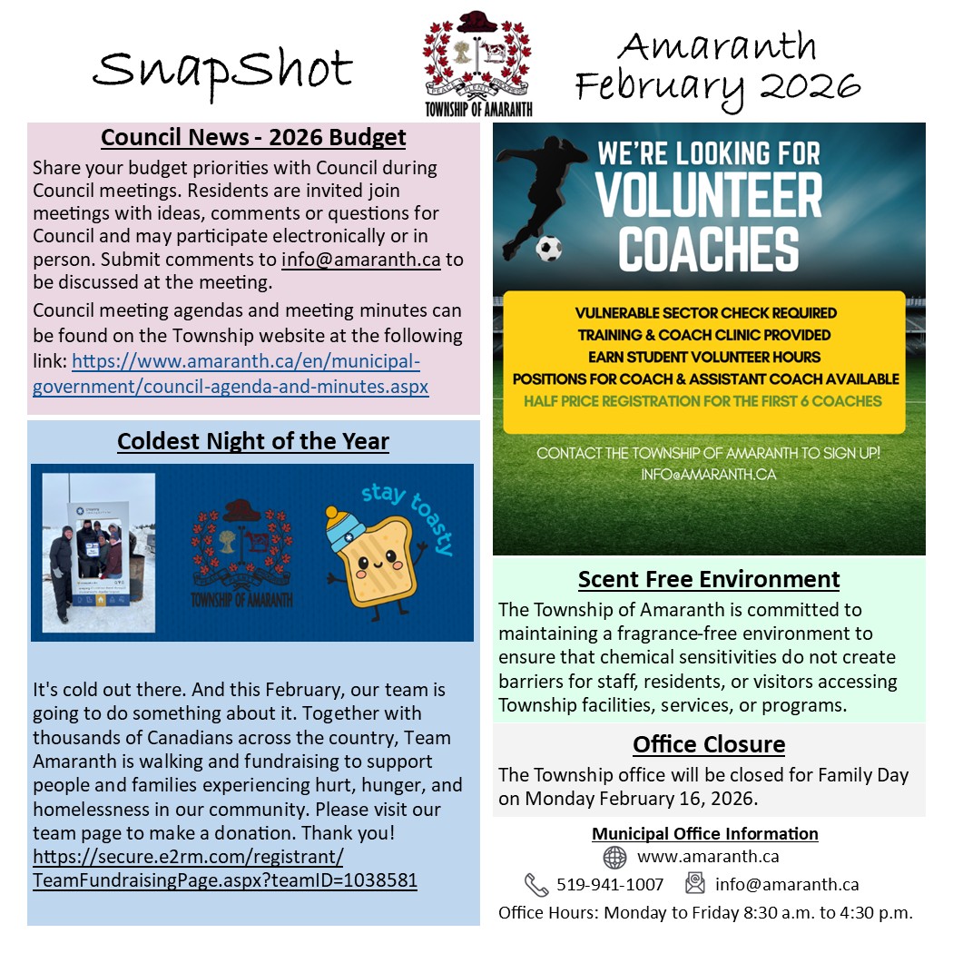 The Township of Amaranth will now be placing all Planning Notices on the Township website at the following link: https://www.amaranth.ca/municipal-government/planning-development/